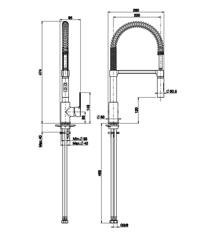 Смеситель для кухни, Fima Carlo Frattini, Kitchen, Mast, тип открывания воды-однорычажный, тип регулирования воды-керамический картридж, монтаж-на раковину/столешницу, отверстия для монтажа-1, высота, мм-474, вынос излива, мм-220, тип излива-поворотный, с двумя гибкими шлангами, ручной душ 2 режима ABS, тип подводки-гибкая, стандарт подвода воды-3/8", цвет-золото Смеситель для кухни, Fima Carlo Frattini, Kitchen, Mast, цвет-золото