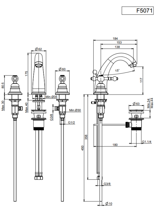 Смеситель для раковины, Fima Carlo Frattini, Epoque, тип открывания воды-вентильный, тип регулирования воды-керамическая кран-букса, монтаж-на раковину/столешницу, отверстия для монтажа-3, высота, мм-175, вынос излива, мм-138, тип излива-неподвижный, донный клапан-есть, тип подводки-гибкая, стандарт подвода воды-3/8", цвет-золото Смеситель для раковины, Fima Carlo Frattini, Epoque, цвет-золото