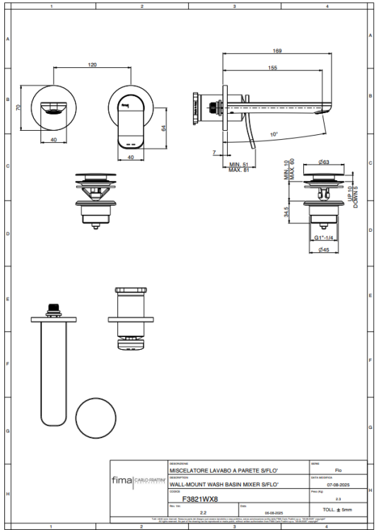 Смеситель для раковины, Fima Carlo Frattini, Flo', тип открывания воды-однорычажный, монтаж-настенный встраиваемый, отверстия для монтажа-2, высота, мм-70, вынос излива, мм-150, тип излива-неподвижный, донный клапан-есть, click-clack 1``1/4, тип подводки-жесткая, внутренняя часть-необходимо заказать, в копмлекте-металлическая пластина, максимальная скорость потока при 3 бар: 5 л/м, цвет-хром Смеситель для раковины, Fima Carlo Frattini, Flo', цвет-хром