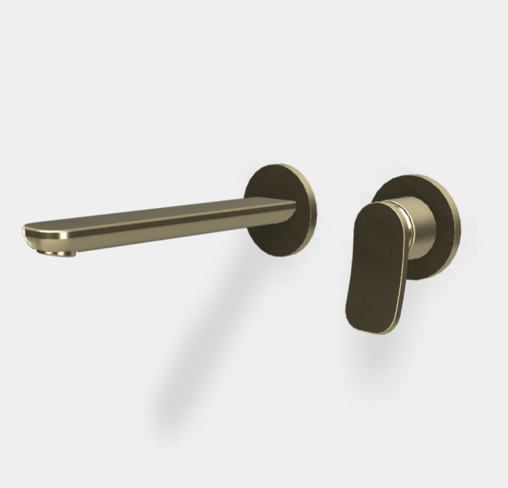 Смеситель для раковины, Fima Carlo Frattini, Flo', тип открывания воды-однорычажный, монтаж-настенный встраиваемый, отверстия для монтажа-2, высота, мм-70, вынос излива, мм-200, тип излива-неподвижный, донный клапан-есть, click-clack 1``1/4, тип подводки-жесткая, внутренняя часть-необходимо заказать, в комплекте-металлическая пластина, цвет-шампань брашированная Смеситель для раковины, Fima Carlo Frattini, Flo', цвет-шампань брашированная