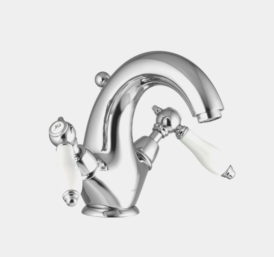 Смеситель для раковины, Fima Carlo Frattini, Herend, тип открывания воды-вентильный, тип регулирования воды-керамическая кран-букса, монтаж-на раковину/столешницу, отверстия для монтажа-1, высота, мм-169.5, вынос излива, мм-132, тип излива-неподвижный, материал ручки-керамика, цвет ручки-белый, донный клапан-есть, 1"1/4, в комплекте с двумя гибкими шлангами, тип подводки-гибкая, цвет-античная бронза Смеситель для раковины, Fima Carlo Frattini, Herend, цвет-античная бронза/белый