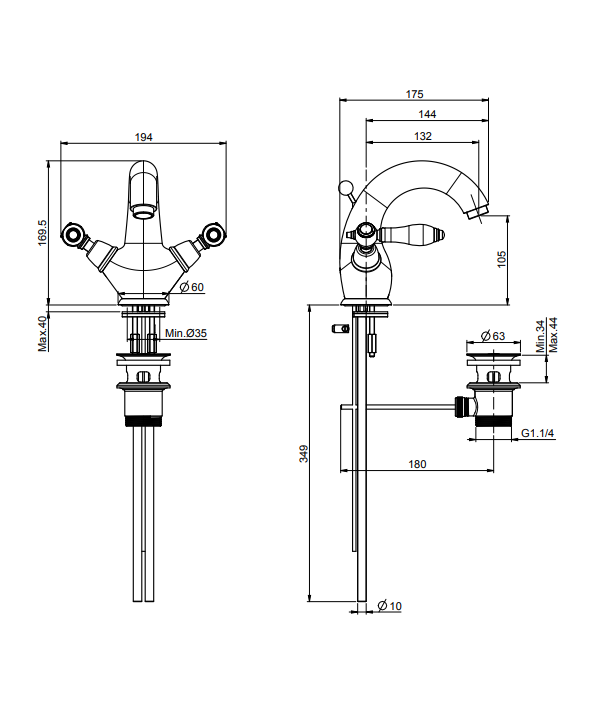 Смеситель для раковины, Fima Carlo Frattini, Herend, тип открывания воды-вентильный, тип регулирования воды-керамическая кран-букса, монтаж-на раковину/столешницу, отверстия для монтажа-1, высота, мм-169.5, вынос излива, мм-132, тип излива-неподвижный, материал ручки-керамика, цвет ручки-белый, донный клапан-есть, 1"1/4, в комплекте с двумя гибкими шлангами, тип подводки-гибкая, цвет-брошированное золото Смеситель для раковины, Fima Carlo Frattini, Herend, цвет-брошированное золото/белый