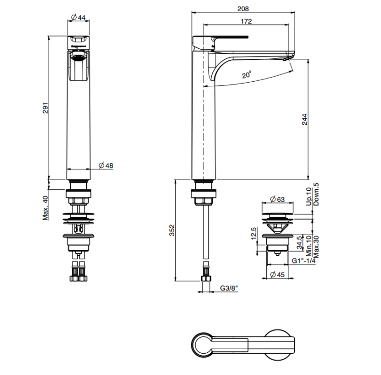 Смеситель для раковины, Fima Carlo Frattini, Mast, тип открывания воды-однорычажный, тип регулирования воды-керамический картридж, монтаж-на раковину/столешницу, отверстия для монтажа-1, высота, мм-291, вынос излива, мм-173, тип излива-неподвижный, донный клапан-есть, click-clack 1``1/4, тип подводки-гибкая, стандарт подвода воды-3/8", максимальная скорость потока при 3 бар: 5 л/м, цвет-черный матовый Смеситель для раковины, Fima Carlo Frattini, Mast, цвет-черный матовый