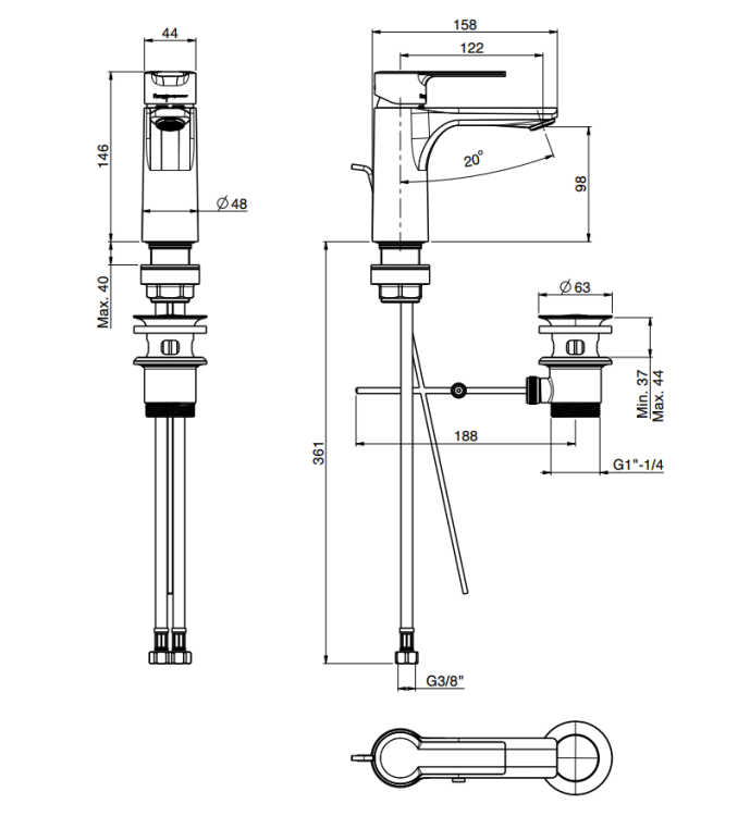 Смеситель для раковины, Fima Carlo Frattini, Mast, тип открывания воды-однорычажный, тип регулирования воды-керамический картридж, монтаж-на раковину/столешницу, отверстия для монтажа-1, высота, мм-146, вынос излива, мм-123, тип излива-неподвижный, донный клапан-есть, 1"1/4, тип подводки-гибкая, стандарт подвода воды-3/8", максимальная скорость потока при 3 бар: 5 л/м, цвет-хром Смеситель для раковины, Fima Carlo Frattini, Mast, цвет-хром