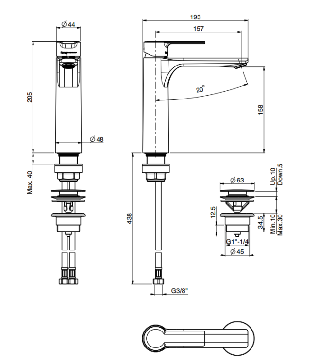 Смеситель для раковины, Fima Carlo Frattini, Mast, тип открывания воды-однорычажный, тип регулирования воды-керамический картридж, монтаж-на раковину/столешницу, отверстия для монтажа-1, высота, мм-205, вынос излива, мм-158, донный клапан-есть, тип подводки-гибкая, стандарт подвода воды-3/8", цвет-золото Смеситель для раковины, Fima Carlo Frattini, Mast, цвет-золото