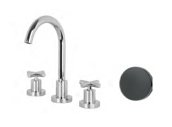 Смеситель для раковины, Fima Carlo Frattini, Maxima, тип открывания воды-вентильный, монтаж-на раковину/столешницу, отверстия для монтажа-3, высота, мм-263, вынос излива, мм-153, тип излива-поворотный, донный клапан-есть, 1"1/4, тип подводки-гибкая, стандарт подвода воды-3/8", с двумя гибкими шлангами, цвет-брашированный черный хром Смеситель для раковины, Fima Carlo Frattini, Maxima, цвет-брашированный черный хром