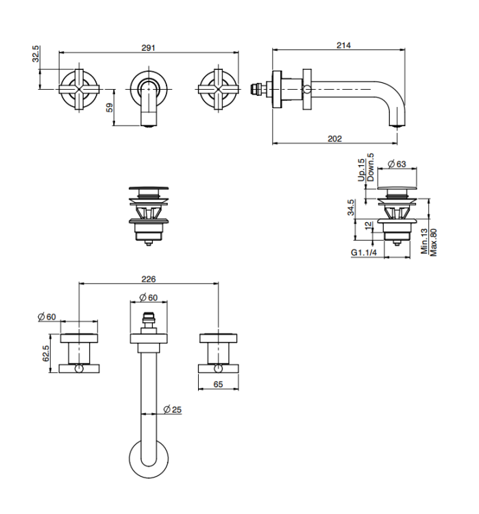Смеситель для раковины, Fima Carlo Frattini, Maxima, тип открывания воды-вентильный, тип регулирования воды-керамическая кран-букса, монтаж-настенный встраиваемый, отверстия для монтажа-3, высота, мм-93, вынос излива, мм-202, тип излива-неподвижный, донный клапан-есть, click-clack, 1``1/4, тип подводки-жесткая, внутренняя часть-необходимо заказать, цвет-чёрный хром Смеситель для раковины, Fima Carlo Frattini, Maxima, цвет-чёрный хром