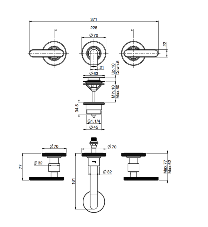 Смеситель для раковины, Fima Carlo Frattini, Park Lane, тип открывания воды-вентильный, тип регулирования воды-керамическая кран-букса, монтаж-настенный встраиваемый, отверстия для монтажа-3, вынос излива, мм-161, тип излива-неподвижный, донный клапан-есть, тип подводки-жесткая, внутренняя часть-необходимо заказать, цвет-хром Смеситель для раковины, Fima Carlo Frattini, Park Lane, цвет-хром