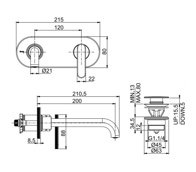 Смеситель для раковины, Fima Carlo Frattini, Park Lane, тип открывания воды-однорычажный, монтаж-настенный встраиваемый, отверстия для монтажа-2, высота, мм-80, вынос излива, мм-200, тип излива-неподвижный, донный клапан-есть, click-clack 1``1/4, тип подводки-жесткая, внутренняя часть-необходимо заказать, в комплекте-металлическая пластина, цвет-хром черный брашированный Смеситель для раковины, Fima Carlo Frattini, Park Lane, цвет-хром черный брашированный