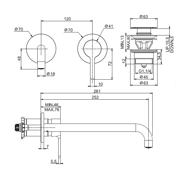 Смеситель для раковины, Fima Carlo Frattini, Snap, тип открывания воды-однорычажный, тип регулирования воды-керамический картридж, монтаж-настенный встраиваемый, отверстия для монтажа-2, вынос излива, мм-252, тип излива-неподвижный, донный клапан-есть (click-clack 1``1/4), внутренняя часть-необходимо заказать, цвет-черный хром брашированный Смеситель для раковины, Fima Carlo Frattini, Snap, цвет-черный хром брашированный