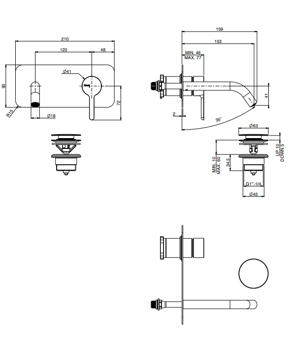 Смеситель для раковины, Fima Carlo Frattini, Snap, тип открывания воды-однорычажный, монтаж-настенный встраиваемый, отверстия для монтажа-2, высота, мм-117, вынос излива, мм-153, тип излива-неподвижный, донный клапан-есть, click-clack 1``1/4, тип подводки-жесткая, стандарт подвода воды-1/2", внутренняя часть-необходимо заказать, максимальная скорость потока при 3 бар: 5 л/м, металлическая пластина, цвет-никель брашированный Смеситель для раковины, Fima Carlo Frattini, Snap, цвет-никель брашированный