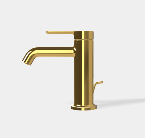 Смеситель для раковины, Fima Carlo Frattini, Snap, тип открывания воды-однорычажный, тип регулирования воды-керамический картридж, монтаж-на раковину/столешницу, отверстия для монтажа-1, высота, мм-147, вынос излива, мм-110, тип излива-неподвижный, донный клапан-есть 1"1/4, тип подводки-гибкая, цвет-золото Смеситель для раковины, Fima Carlo Frattini, Snap, цвет-золото