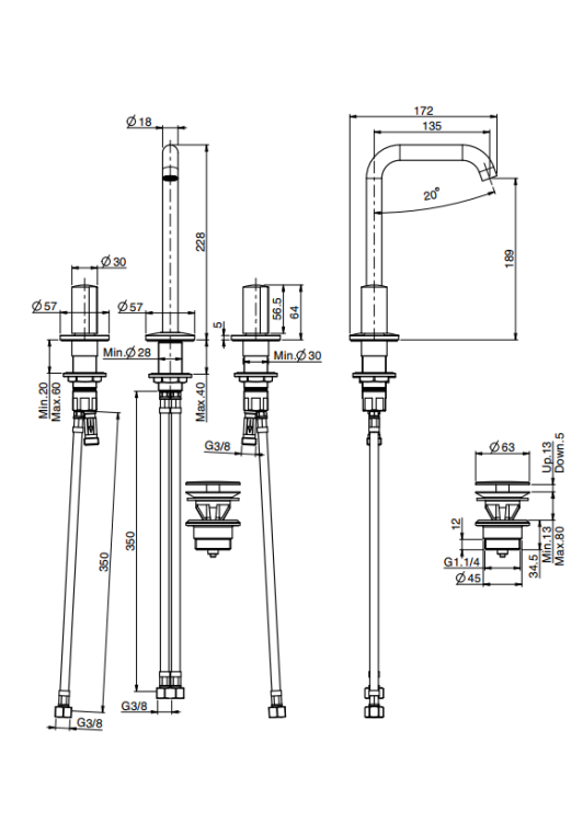 Смеситель для раковины, Fima Carlo Frattini, So, тип открывания воды-вентильный, тип регулирования воды-керамическая кран-букса, монтаж-на раковину/столешницу, отверстия для монтажа-3, высота, мм-228, вынос излива, мм-135, тип излива-поворотный, донный клапан-есть (click-clack 1``1/4), тип подводки-гибкая, с двумя гибкими шлангами, стандарт подвода воды-3/8", ручки-необходимо заказать, цвет-золото брашированное Смеситель для раковины, Fima Carlo Frattini, So, цвет-золото брашированное