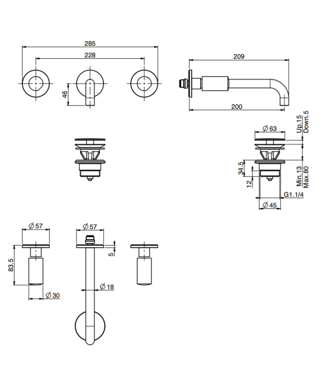 Смеситель для раковины, Fima Carlo Frattini, So, тип открывания воды-вентильный, тип регулирования воды-керамическая кран-букса, монтаж-настенный встраиваемый, отверстия для монтажа-3, вынос излива, мм-200, тип излива-неподвижный, донный клапан-есть (click-clack 1``1/4), тип подводки-жесткая, внутренняя часть и ручки-необходимо заказать, цвет-брашированное золото Смеситель для раковины, Fima Carlo Frattini, So, цвет-брашированное золото