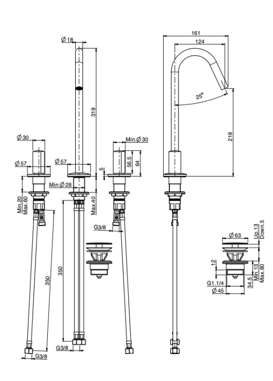 Смеситель для раковины, Fima Carlo Frattini, So, тип открывания воды-вентильный, ручки-необхдимо заказать, тип регулирования воды-керамическая кран-букса, монтаж-на раковину/столешницу, отверстия для монтажа-3, высота, мм-319, вынос излива, мм-124, тип излива-поворотный, донный клапан-есть (click-clack 1``1/4), тип подводки-гибкая, с двумя гибкими шлангами, стандарт подвода воды-3/8", цвет-хром Смеситель для раковины, Fima Carlo Frattini, So, цвет-хром