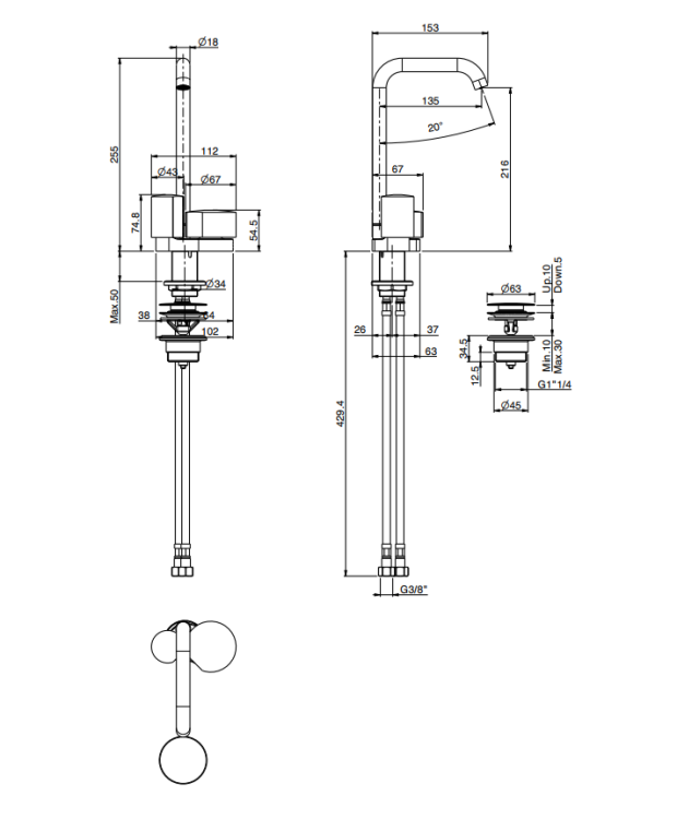 Смеситель для раковины, Fima Carlo Frattini, So, тип открывания воды-вентильный, ручки-необходимо заказать, тип регулирования воды-керамическая кран-букса, монтаж-на раковину/столешницу, отверстия для монтажа-1, высота, мм-256, вынос излива, мм-135, тип излива-поворотный, донный клапан-есть (click-clack 1``1/4), тип подводки-гибкая, стандарт подвода воды-3/8", ручки-необходимо заказать, цвет-золото Смеситель для раковины, Fima Carlo Frattini, So, цвет-золото