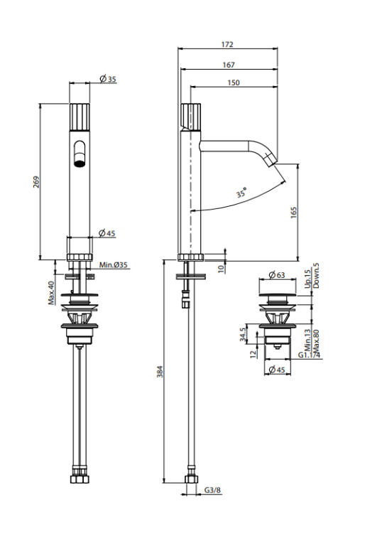 Смеситель для раковины, Fima Carlo Frattini, Spillo Tech, V COLLECTION, тип открывания воды-однорычажный, тип регулирования воды-керамический картридж, монтаж-на раковину/столешницу, отверстия для монтажа-1, высота, мм-269, вынос излива, мм-150, тип излива-неподвижный, донный клапан-есть (click-clack 1``1/4), с двумя гибкими шлангами, тип подводки-гибкая, стандарт подвода воды-3/8", цвет-черный матовый Смеситель для раковины, Fima Carlo Frattini, Spillo Tech, V COLLECTION, цвет-черный матовый
