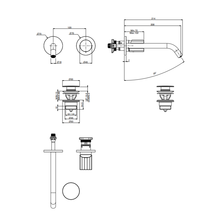 Смеситель для раковины, Fima Carlo Frattini, Spillo Tech, V COLLECTION, тип открывания воды-однорычажный, тип регулирования воды-керамический картридж, монтаж-настенный встраиваемый, отверстия для монтажа-2, высота, мм-70, вынос излива, мм-208, тип излива-неподвижный, донный клапан-есть, click-clack 1``1/4, тип подводки-жесткая, внутренняя часть-необходимо заказать, цвет-черный матовый Смеситель для раковины, Fima Carlo Frattini, Spillo Tech, V COLLECTION, цвет-черный матовый