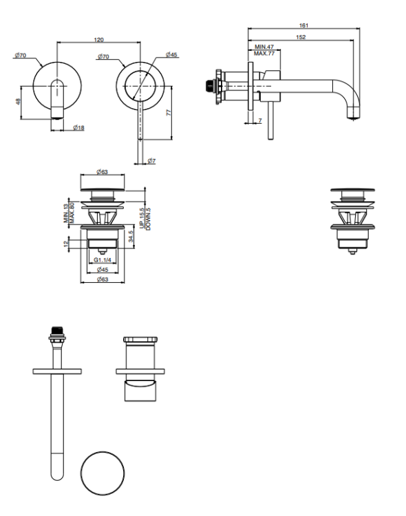 Смеситель для раковины, Fima Carlo Frattini, Spillo Up, тип открывания воды-однорычажный, тип регулирования воды-керамический картридж, монтаж-настенный встраиваемый, отверстия для монтажа-2, высота, мм-70, вынос излива, мм-150, тип излива-неподвижный, донный клапан-есть click-clack 1``1/4, тип подводки-жесткая, внутренняя часть-необходимо заказать, цвет-белый матовый Смеситель для раковины, Fima Carlo Frattini, Spillo Up, цвет-белый матовый