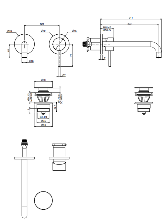 Смеситель для раковины, Fima Carlo Frattini, Spillo Up, тип открывания воды-однорычажный, тип регулирования воды-керамический картридж, монтаж-настенный встраиваемый, отверстия для монтажа-2, вынос излива, мм-202, донный клапан-есть, внутренняя часть-необходимо заказать, цвет-белый матовый Смеситель для раковины, Fima Carlo Frattini, Spillo Up, цвет-белый матовый
