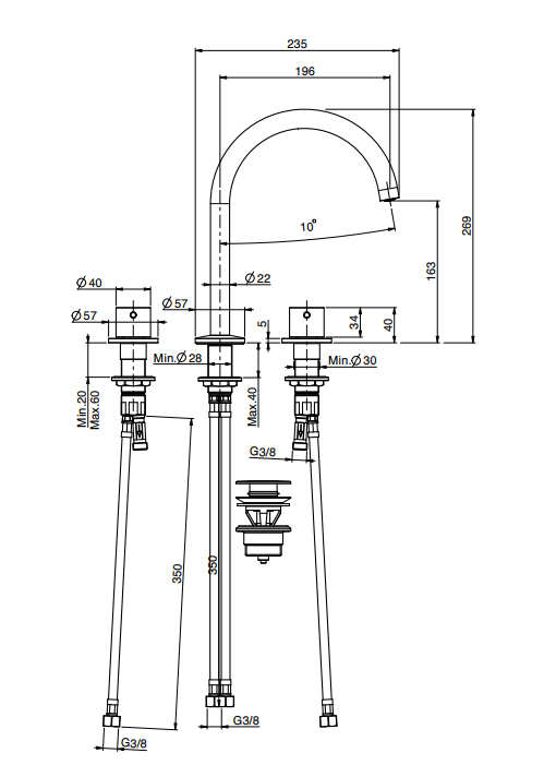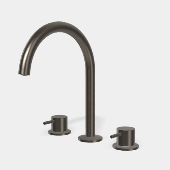 Смеситель для раковины, Fima Carlo Frattini, Spillo Up, тип открывания воды-вентильный, тип регулирования воды-керамическая кран-букса, монтаж-на раковину/столешницу, отверстия для монтажа-3, высота, мм-269, вынос излива, мм-196, тип излива-поворотный, донный клапан-есть click-clack 1``1/4, с двумя гибкими шлангами, тип подводки-гибкая, стандарт подвода воды-3/8", цвет-хром черный брашированный Смеситель для раковины, Fima Carlo Frattini, Spillo Up, цвет-хром черный брашированный