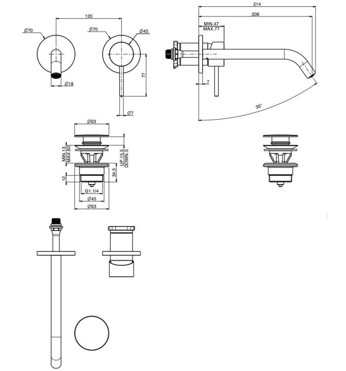 Смеситель для раковины, Fima Carlo Frattini, Spillo Up, тип открывания воды-однорычажный, тип регулирования воды-керамический картридж, монтаж-настенный встраиваемый, отверстия для монтажа-2, высота, мм-77, вынос излива, мм-208, тип излива-неподвижный, донный клапан-есть (click-clack 1``1/4), внутренняя часть-необходимо заказать, цвет-бронза брашированная янтарная Смеситель для раковины, Fima Carlo Frattini, Spillo Up, цвет-бронза брашированная янтарная