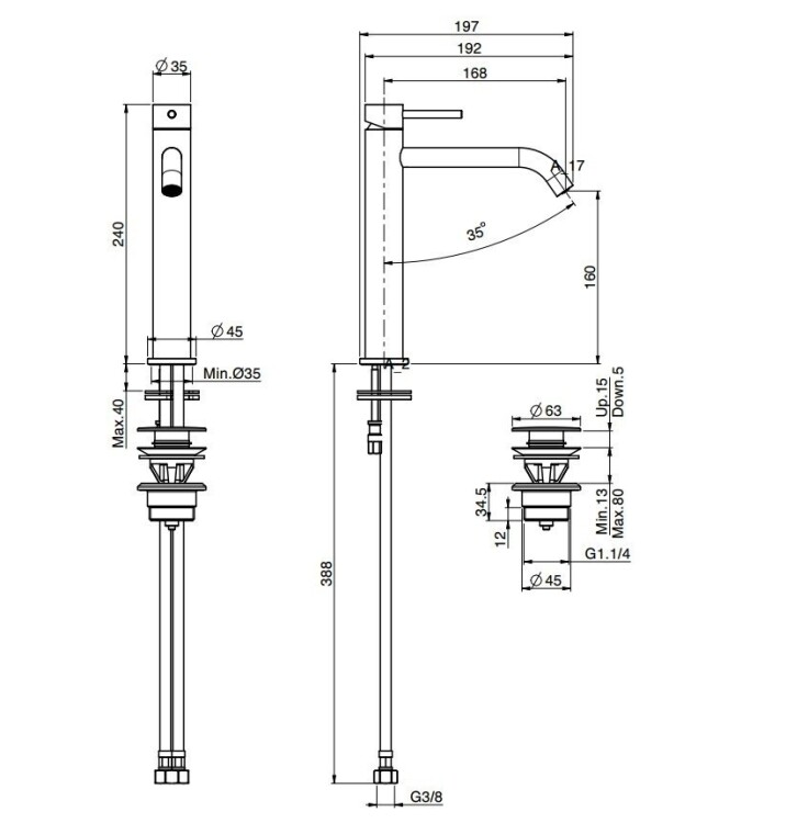 Смеситель для раковины, Fima Carlo Frattini, Spillo Up, тип открывания воды-однорычажный, тип регулирования воды-керамический картридж, монтаж-на раковину/столешницу, отверстия для монтажа-1, высота, мм-240, вынос излива, мм-168, тип излива-неподвижный, с двумя гибкими шлангами, донный клапан-есть click-clack 1``1/4, тип подводки-гибкая, стандарт подвода воды-3/8", цвет-брашированное золото Смеситель для раковины, Fima Carlo Frattini, Spillo Up, цвет-брашированное золото