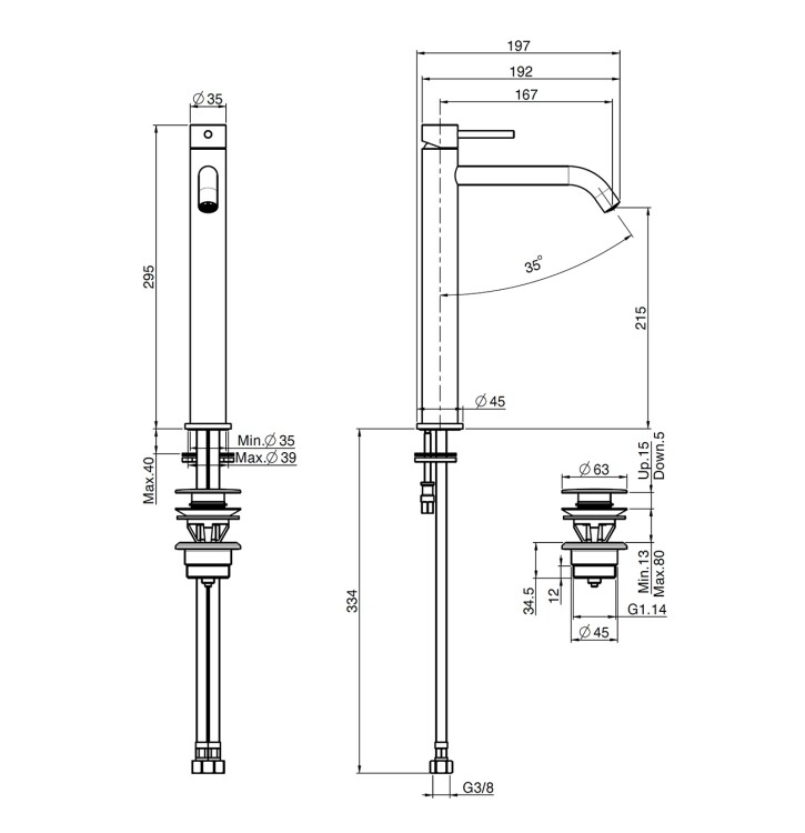 Смеситель для раковины, Fima Carlo Frattini, Spillo Up, тип открывания воды-однорычажный, тип регулирования воды-керамический картридж, монтаж-на раковину/столешницу, отверстия для монтажа-1, высота, мм-295, вынос излива, мм-167, тип излива-неподвижный, донный клапан-есть click-clack 1``1/4 с переливом, тип подводки-гибкая, стандарт подвода воды-3/8", цвет-брашированное золото Смеситель для раковины, Fima Carlo Frattini, Spillo Up, цвет-брашированное золото