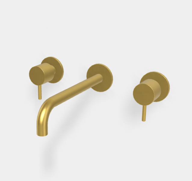 Смеситель для раковины, Fima Carlo Frattini, Spillo Up, тип открывания воды-вентильный, тип регулирования воды-керамическая кран-букса, монтаж-настенный, отверстия для монтажа-3, вынос излива, мм-150, тип излива-неподвижный, донный клапан-есть click-clack 1``1/4, тип подводки-жесткая, внутренняя часть-необходимо заказать, цвет-брашированное золото Смеситель для раковины, Fima Carlo Frattini, Spillo Up, цвет-брашированное золото