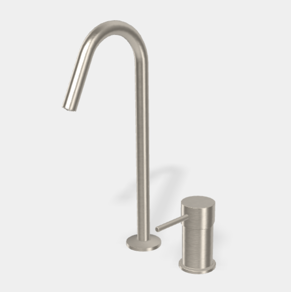 Смеситель для раковины, Fima Carlo Frattini, Spillo Up, тип открывания воды-однорычажный, тип регулирования воды-керамический картридж, монтаж-на раковину/столешницу, отверстия для монтажа-2, высота, мм-318.5, вынос излива, мм-125, тип излива-поворотный, донный клапан-есть click-clack 1``1/4, с двумя гибкими шлангами, тип подводки-гибкая, стандарт подвода воды-1/2", цвет-брашированный никель Смеситель для раковины, Fima Carlo Frattini, Spillo Up, цвет-брашированный никель