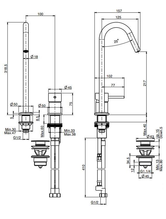 Смеситель для раковины, Fima Carlo Frattini, Spillo Up, тип открывания воды-однорычажный, тип регулирования воды-керамический картридж, монтаж-на раковину/столешницу, отверстия для монтажа-2, высота, мм-318.5, вынос излива, мм-125, тип излива-поворотный, донный клапан-есть click-clack 1``1/4, с двумя гибкими шлангами, тип подводки-гибкая, стандарт подвода воды-1/2", цвет-брашированный шампань Смеситель для раковины, Fima Carlo Frattini, Spillo Up, цвет-брашированный шампань