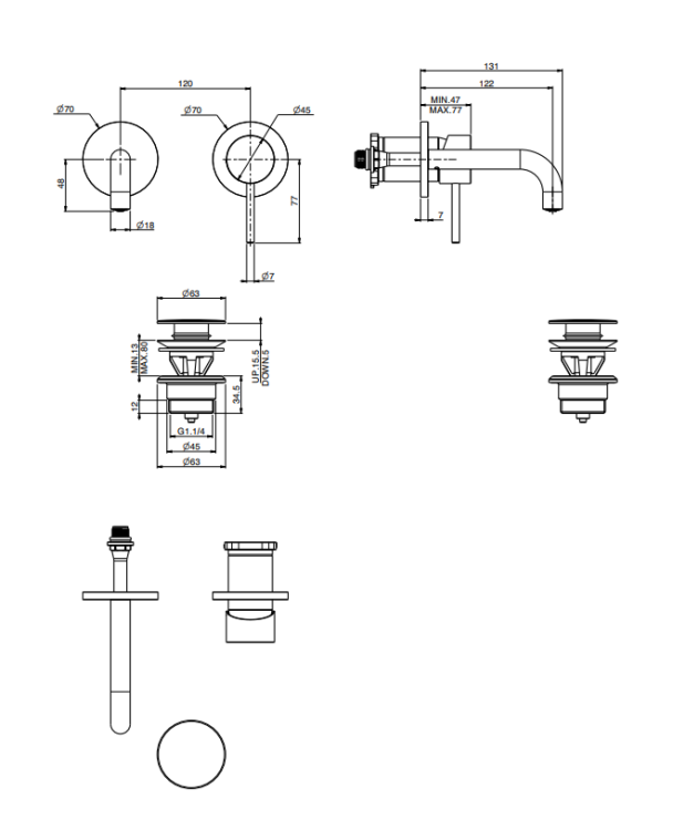 Смеситель для раковины, Fima Carlo Frattini, Spillo Up, тип открывания воды-однорычажный, тип регулирования воды-керамический картридж, монтаж-настенный встраиваемый, отверстия для монтажа-2, высота, мм-70, вынос излива, мм-120, тип излива-неподвижный, донный клапан-есть click-clack 1``1/4, тип подводки-жесткая, внутренняя часть-необходимо заказать, цвет-брашированный шампань Смеситель для раковины, Fima Carlo Frattini, Spillo Up, цвет-брашированный шампань