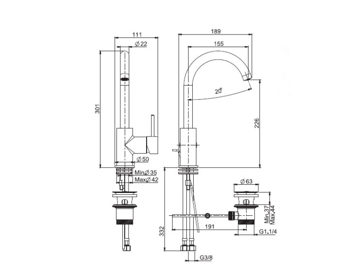 Смеситель для раковины, Fima Carlo Frattini, Spillo Up, тип открывания воды-однорычажный, тип регулирования воды-керамический картридж, монтаж-на раковину/столешницу, отверстия для монтажа-1, высота, мм-301, вынос излива, мм-155, тип излива-поворотный, донный клапан-есть 1"1/4, с двумя гибкими шлангами, тип подводки-гибкая, стандарт подвода воды-3/8", цвет-хром Смеситель для раковины, Fima Carlo Frattini, Spillo Up, цвет-хром