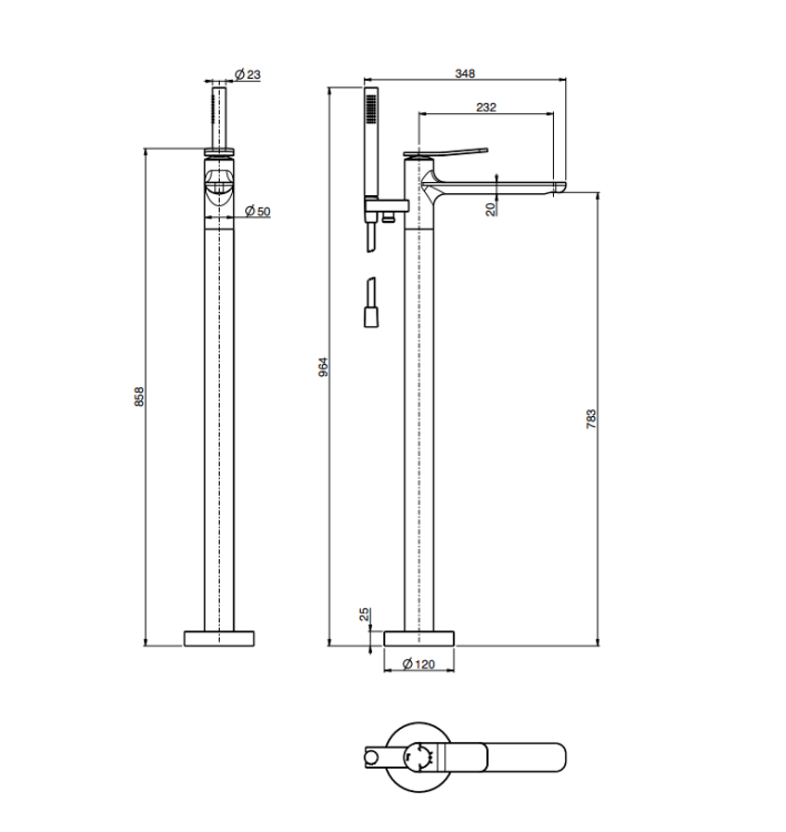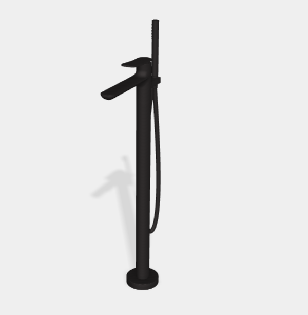 Смеситель для ванны, Fima Carlo Frattini, Flo', тип открывания воды-однорычажный, тип регулирования воды-керамический картридж, монтаж-напольный, отверстия для монтажа-1, высота от пола до аэратора, мм-783, вынос излива, мм-232, в комплекте- ручной душ, с защитой от извести анти-кальк, гибкий шланг хромалюкс, мм-1500, внутренняя часть-необходимо заказать, цвет-черный матовый Смеситель для ванны, Fima Carlo Frattini, Flo', цвет-черный матовый