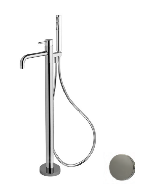 Смеситель для ванны, Fima Carlo Frattini, Spillo Up, тип открывания воды-однорычажный, монтаж-напольный, отверстия для монтажа-1, вынос излива, мм-254, в комплекте-ручной душ, шланг,мм-1500, внутренняя часть-необходимо заказать, цвет-брашированный никель Смеситель для ванны, Fima Carlo Frattini, Spillo Up, цвет-брашированный никель