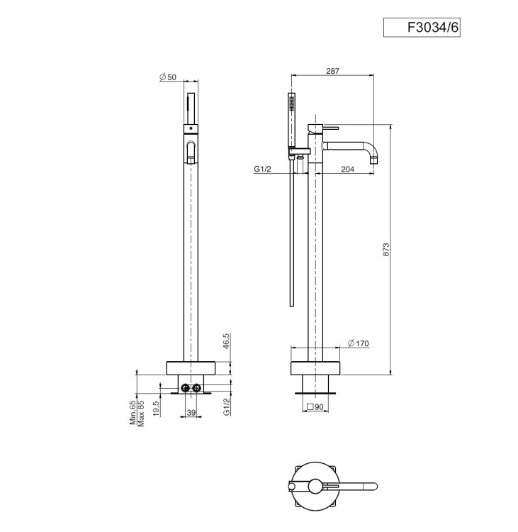Смеситель для ванны, Fima Carlo Frattini, Spillo Up, тип открывания воды-однорычажный, монтаж-напольный, отверстия для монтажа-1, вынос излива, мм-254, в комплекте-ручной душ, шланг,мм-1500, переключатель, внутренняя часть-необходимо заказать, цвет-хром Смеситель для ванны, Fima Carlo Frattini, Spillo Up, цвет-хром