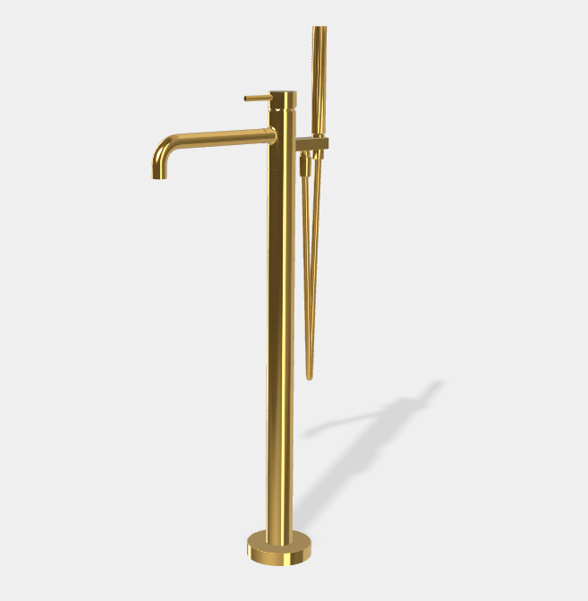 Смеситель для ванны и душа, Fima Carlo Frattini, Spillo Up, тип открывания воды-однорычажный, тип регулирования воды-керамический картридж, монтаж-напольный, отверстия для монтажа-1, вынос излива, мм-254, тип излива-неподвижный, ручной душ с защитой от извести анти-кальк-в комплекте, гибкий шланг хромалюкс, длина шланга, мм-1500, внутренняя часть-необходимо заказать, цвет-золото Смеситель для ванны, Fima Carlo Frattini, Spillo Up, цвет-золото