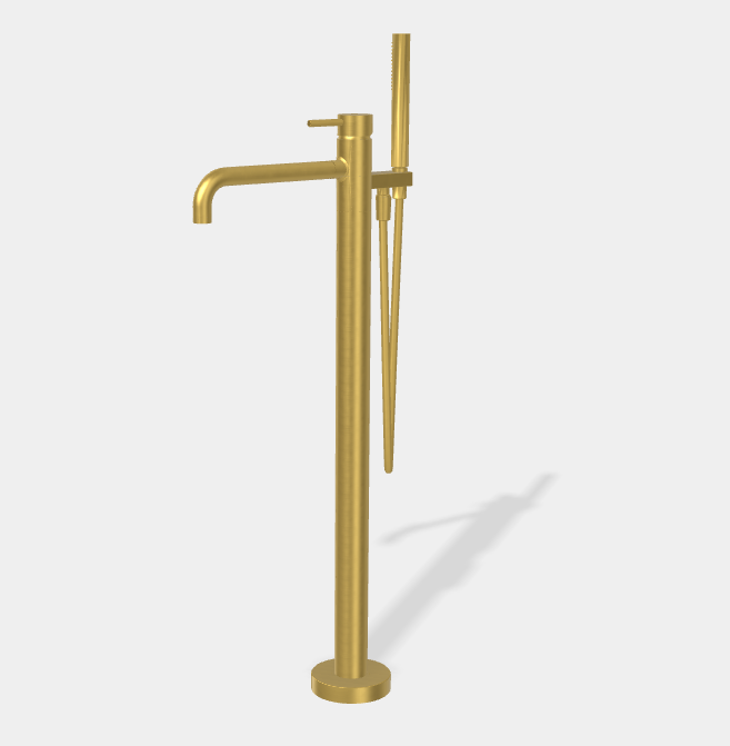 Смеситель для ванны и душа, Fima Carlo Frattini, Spillo Up, тип открывания воды-однорычажный, тип регулирования воды-керамический картридж, монтаж-напольный, отверстия для монтажа-1, вынос излива, мм-254, тип излива-неподвижный, ручной душ с защитой от извести анти-кальк-в комплекте, гибкий шланг хромалюкс, длина шланга, мм-1500, внутренняя часть-необходимо заказать, цвет-брашированное золото Смеситель для ванны, Fima Carlo Frattini, Spillo Up,цвет-брашированное золото