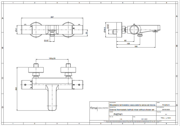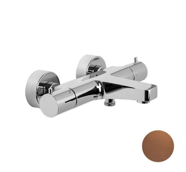 Смеситель для ванны и душа, Fima Carlo Frattini, Fimatherm, тип открывания воды-однорычажный, тип регулирования воды-термостатический картридж, с переключателем на ручке, монтаж-настенный, отверстия для монтажа-2, вынос излива, мм-180, тип излива-неподвижный, 2 подвода воды 1/2 с эксцентриком, цвет-бронза брашированная янтарная Смеситель для ванны и душа, Fima Carlo Frattini, Fimatherm, цвет-бронза брашированная янтарная