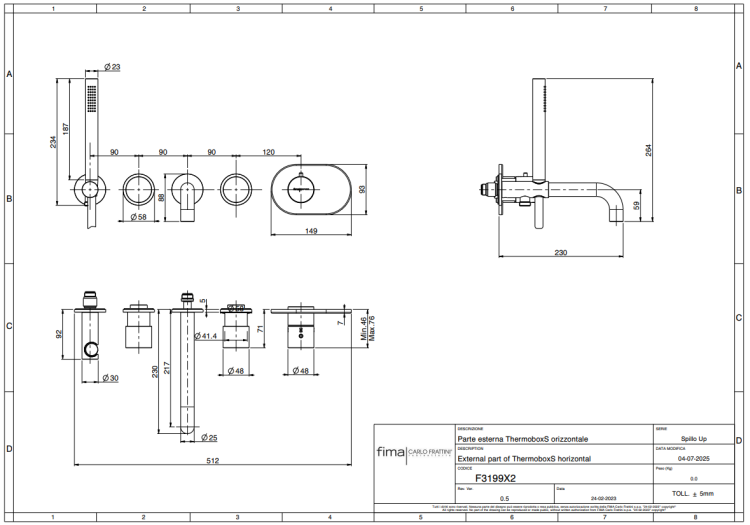 Смеситель для ванны и душа, Fima Carlo Frattini, Fimatherm, тип открывания воды-вентильный, монтаж-настенный встраиваемый, отверстия для монтажа-5, вынос излива, мм-210, в комплекте-2 запорных вентиля, держатель для душа, ручной душ, гибкий шланг хромалюкс,мм-1500, внутренняя часть-необходимо заказать, цвет-чёрный матовый Смеситель для ванны и душа, Fima Carlo Frattini, Fimatherm, цвет-чёрный матовый