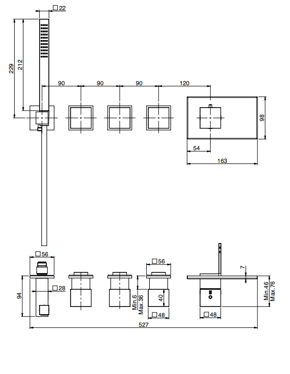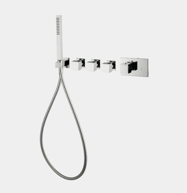 Смеситель для ванны и душа, Fima Carlo Frattini, Fimatherm, тип открывания воды-однорычажный, тип регулирования воды-термостатический картридж, монтаж-настенный встраиваемый, отверстия для монтажа-5, держатель для душа с подводом воды, ручной душ с защитой от извести анти-кальк-в комплекте, гибкий шланг хромалюкс, длина шланга, мм-1500, внутренняя часть-необходимо заказать, цвет-никель брашированный Смеситель для ванны и душа, Fima Carlo Frattini, Fimatherm, цвет-никель брашированный