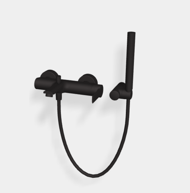 Смеситель для ванны и душа, Fima Carlo Frattini, Mast, тип открывания воды-однорычажный, тип регулирования воды-керамический картридж, монтаж-настенный, отверстия для монтажа-3, вынос излива, мм-181, в комплекте-2 подвода воды 1/2 с эксцентриком, держатель для душа, ручной душ ABS с защитой от извести анти-кальк, переключатель, гибкий шланг хромалюкс,мм-1500, цвет-черный матовый Смеситель для ванны и душа, Fima Carlo Frattini, Mast, цвет-черный матовый