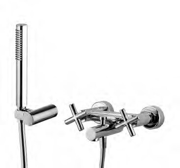 Смеситель для ванны и душа, Fima Carlo Frattini, Maxima, тип открывания воды-вентильный, монтаж-настенный, отверстия для монтажа-3, тип излива-неподвижный, ручной душ, держатель, шланг-в комплекте, длина шланга-1500 мм, 2 подвода воды 1/2 с эксцентриком, цвет-хром Смеситель для ванны и душа, Fima Carlo Frattini, Maxima, цвет-хром