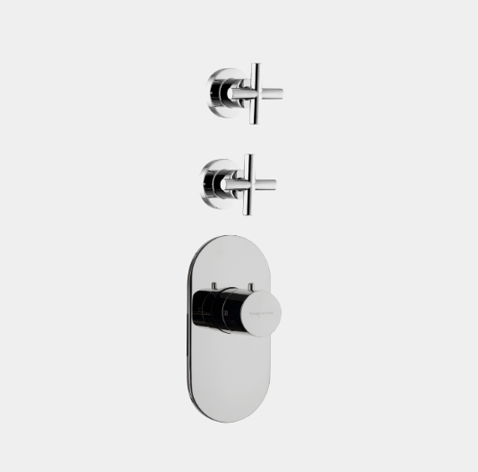 Смеситель для душа, Fima Carlo Frattini, Maxima, на 2 потребителя, тип открывания воды-однорычажный, тип регулирования воды-термостатический картридж, монтаж-настенный встраиваемый, установка вертикально и горизонтально, отверстия для монтажа-3, внутренняя часть-необходимо заказать, 2 запорных вентиля, ручки с защитой от обжигания, цвет-чёрный матовый Смеситель для ванны и душа, Fima Carlo Frattini, Maxima, на 2 потребителя, цвет-чёрный матовый