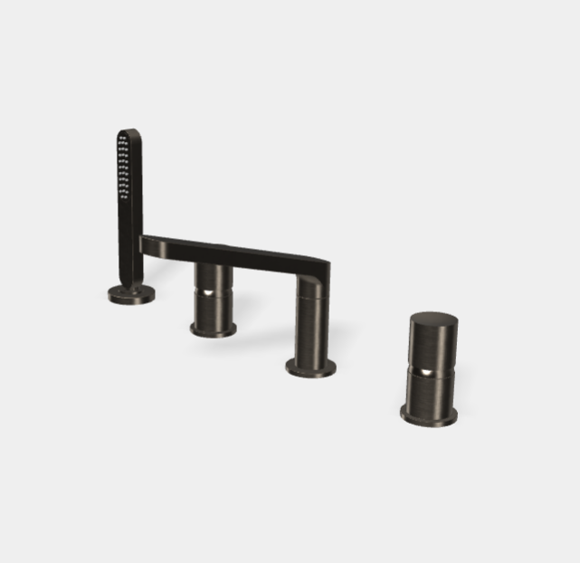 Смеситель для ванны и душа, Fima Carlo Frattini, Nomos Go, тип открывания воды-вентильный, тип регулирования воды-керамическая кран-букса, монтаж-на борт ванны, отверстия для монтажа-4, вынос излива, мм-187, ручной душ, держатель для душа-в комплекте, цвет-брашированный черный хром Смеситель для ванны и душа, Fima Carlo Frattini, Nomos Go, цвет-брашированный черный хром