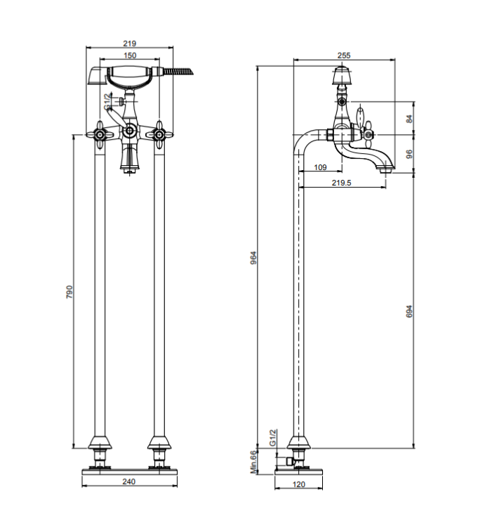 Смеситель для ванны и душа, Fima Carlo Frattini, Olivia, тип открывания воды-вентильный, тип регулирования воды-керамическая кран-букса, монтаж-напольный, отверстия для монтажа-2, вынос излива, мм-219.5, тип излива-неподвижный, ручной душ-в комплекте, внутренняя часть-необходимо заказать, в комплекте-гибкий шланг из латуни 1500 мм, переключатель, комплект труб для монтажа M 1/2”, цвет-античная бронза Смеситель для ванны и душа, Fima Carlo Frattini, Olivia, цвет-античная бронза