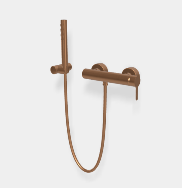 Смеситель для ванны и душа, Fima Carlo Frattini, Snap, монтаж-настенный, отверстия для монтажа-3, ручной душ и держатель для душа-в комплекте, ручной душ с защитой от извести анти-кальк, 2 подвода воды 1/2 с эксцентриком, гибкий шланг хромалюкс 1500 мм, цвет-брашированная янтарная бронза Смеситель для ванны и душа, Fima Carlo Frattini, Snap, цвет-брашированная янтарная бронза