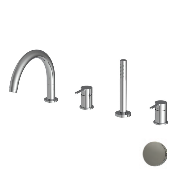 Смеситель для ванны и душа, Fima Carlo Frattini, Snap, тип открывания воды-вентильный, тип регулирования воды-керамическая кран-букса, монтаж-на борт ванны, отверстия для монтажа-4, вынос излива, мм-232, ручной душ-в комплекте, цвет-никель брашированный Смеситель для ванны и душа, Fima Carlo Frattini, Snap, цвет-никель брашированный