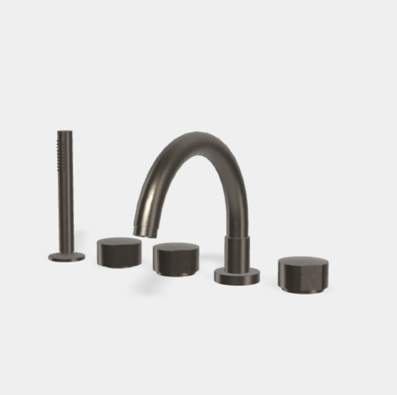 Смеситель для ванны и душа, Fima Carlo Frattini, So, тип открывания воды-вентильный, тип регулирования воды-керамическая кран-букса, монтаж-на борт ванны, отверстия для монтажа-5, вынос излива, мм-232, ручной душ с защитой от извести анти-кальк и держатель-в комплекте, ручки-необходимо заказать (S4, S2), гибкая подводка нейлоновая 1500 мм, цвет-брашированный чёрный хром Смеситель для ванны и душа, Fima Carlo Frattini, So, цвет-брашированный чёрный хром