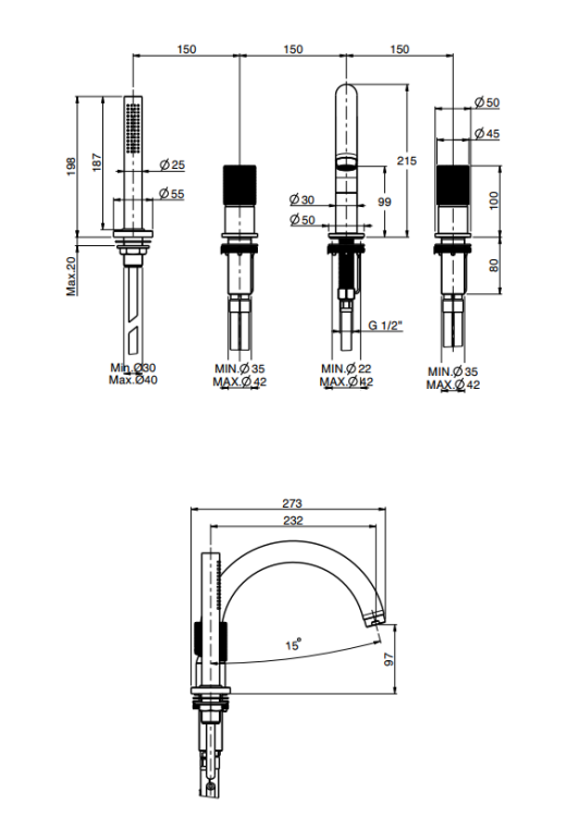 Смеситель для ванны и душа, Fima Carlo Frattini, Spillo Tech, G COLLECTION, тип открывания воды-однорычажный, тип регулирования воды-керамический картридж, монтаж-на борт ванны, отверстия для монтажа-4, вынос излива, мм-232, гибкая подводка нейлоновая 1500 мм, держатель для душа, ручной душ с защитой от извести анти-кальк-в комплекте, цвет-чёрный хром Смеситель для ванны и душа, Fima Carlo Frattini, Spillo Tech, G COLLECTION, цвет-чёрный хром
